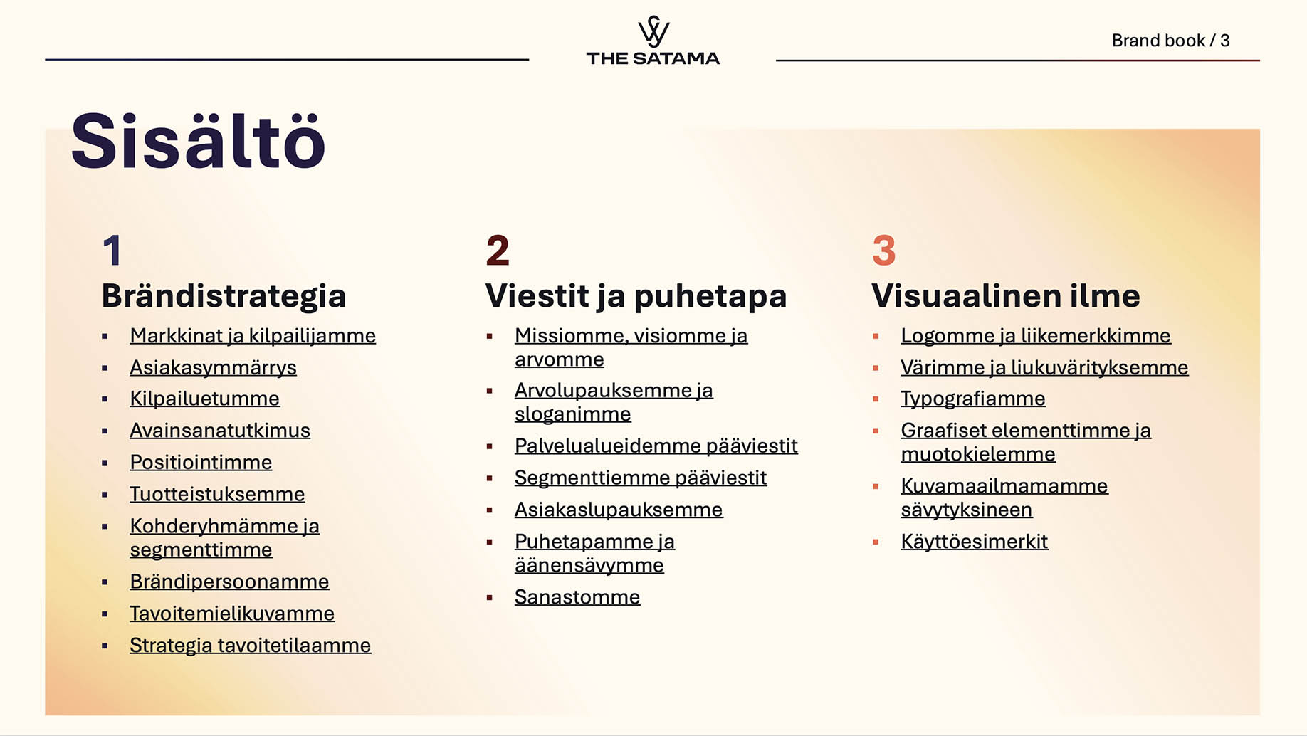 Halusimme tehdä uudesta The Satama -brändistä konseptin, joka kiteyttää todellisen kilpailuetumme erottuvasti. Tarinan, jossa yksittäiset vahvuutemme yhdistyvät ja muodostavat yhdessä jotain ainutlaatuista.